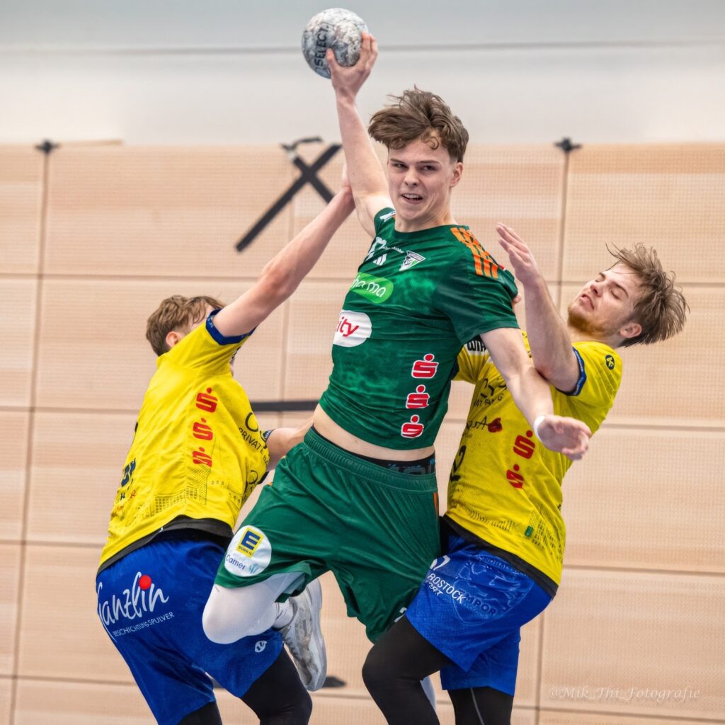 Zum letzten Heimspiel der regulären Saison gastierte am 15.03.2026 um 14:30 Uhr die U 19 des HC Empor Rostock bei der A-Jugend der TSV Burgdorf. Durch die Niederlage Magdeburgs in Berlin am Vortag konnte mit einem Heimsieg der Sprung an die Tabellenspitze gelingen. Mit dieser Bürde starteten die Burgdorfer etwas holprig in die Begegnung. Einige unnötige Ballverluste sowie eine Abschlussschwäche vom Siebenmeterpunkt ließen nur ein 5:5 in der 13. Minute zu. Im weiteren Verlauf fingen sich die Hylmar-Schützlinge und setzten sich bis zur Pause auf fünf Tore ab (19:14) auch weil Simon Marotzke jetzt als vierter Siebenmeterschütze die Bälle vom Strich verwandelte (insgesamt 7 von 7). Der zweite Durchgang ist schnell erzählt. Rostock kam nicht mehr näher ran und fügte sich der drohenden Niederlage. Der Vorsprung wurde kontinuierlich ausgebaut. Simon Marotzke blieb vom Punkt sicher und krönte seine Leistung mit insgesamt 10 Toren. Es wurden alle Spieler eingesetzt und fast jeder trug sich zum Schluss in die Torschützenliste ein.