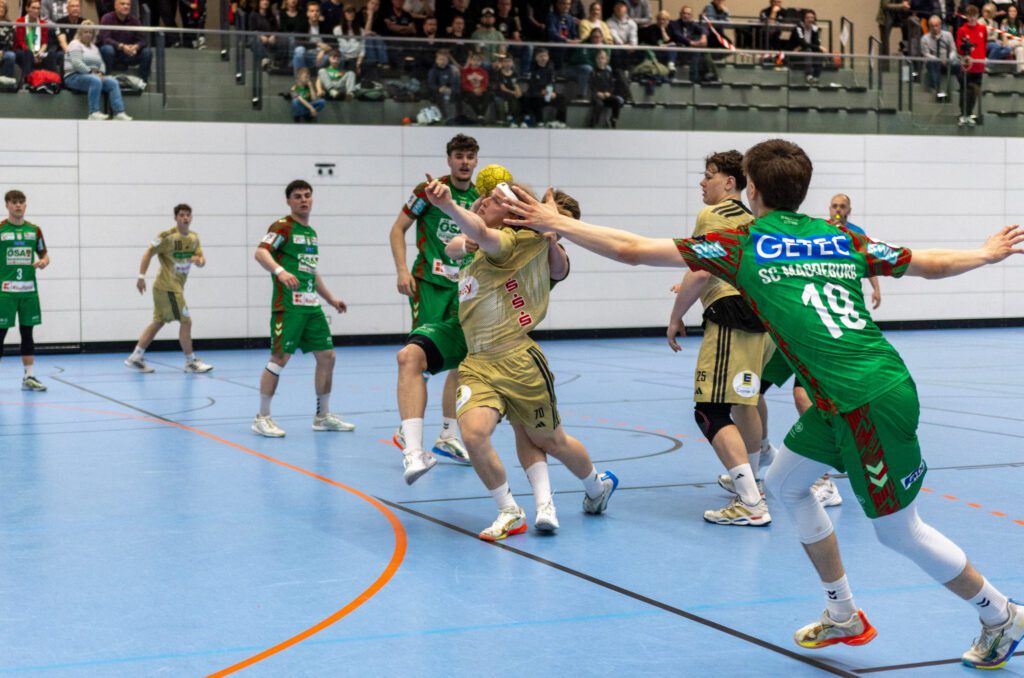 Am Samstag, 25. April, um 17 Uhr, erwartet die TSV Burgdorf im Semifinalrückspiel den SC Magdeburg. Das erste Aufeinandertreffen vor einer Woche in Magdeburg endete für den Nachwuchs aus der Reckenschmiede mit einer knappen 31:32 Niederlage. „Es ist noch alles drin. Wir haben uns die Chance auf den Einzug ins Endspiel erhalten“, sagt Trainer Sven Hylmar. Er hofft dabei auf einen Auftritt seiner Sieben, wie sie es in den letzten 20 Spielminuten im Hinspiel gezeigt haben: „Da passte dann viel zusammen und war letztlich die Grundlage für das knappe Ergebnis.“